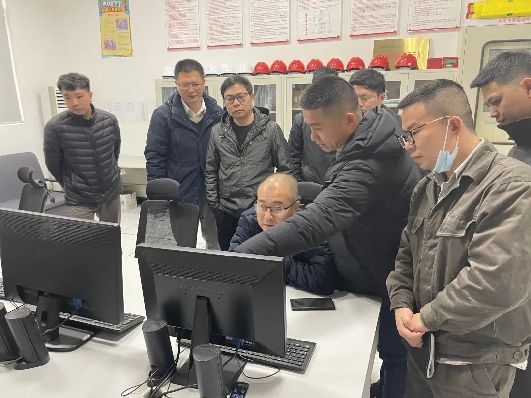 檢查組一行首先來到風電場中控室,通過風光一體化監(jiān)測系統(tǒng)了解風電、光伏新能源項目的相關運行數(shù)據(jù)及運營情況。